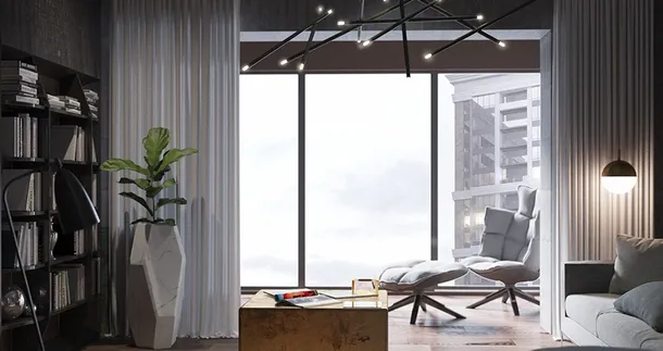Фасадное остекление здания создает достаточную естественную освещенность жилых помещений, благоприятно влияя на самочувствие людей. Благодаря безрамному остеклению, а также полностью скрытой створке окна создается больше света и открытого пространства в здании.
