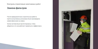 Замена фильтров После завершения всех строительных работ в приточно-вытяжных установках была произведена замена фильтров на новые. Затем система была протестирована, для подтверждения, что она работает правильно и эффективно.
