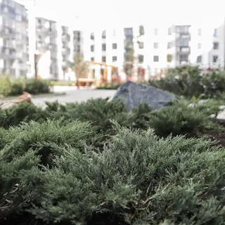 Применение местных видов растений При озеленении территории комплекса были применены местные виды растений, например, можжевельник горизонтальный, ель обыкновенная, кизильник и др., что позволило снизить необходимость в дополнительном орошении, а также создало атмосферу естественной природы, характерной для данной местности.