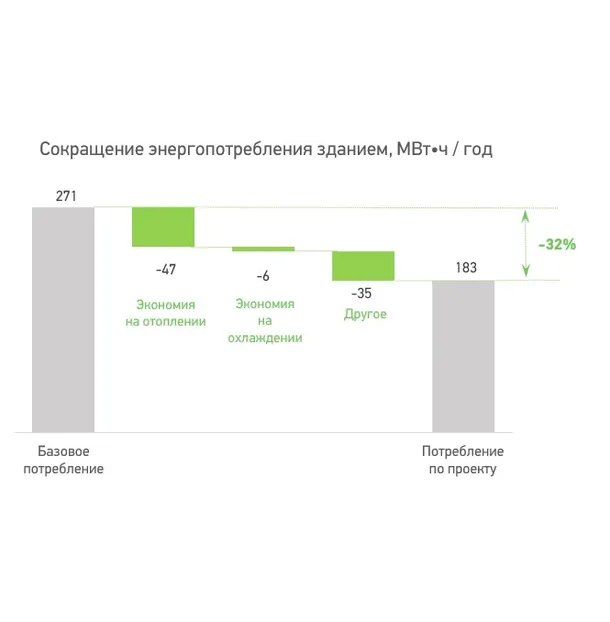 В результате применения современных энергоэффективных решений удалось снизить энергопотребление на 32%, оптимизировав наиболее энергоемкие направления.