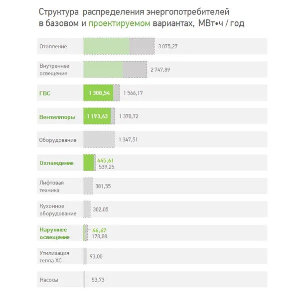 Среди наиболее значимых решений, позволивших сократить потребление энергии по данной категории, были: