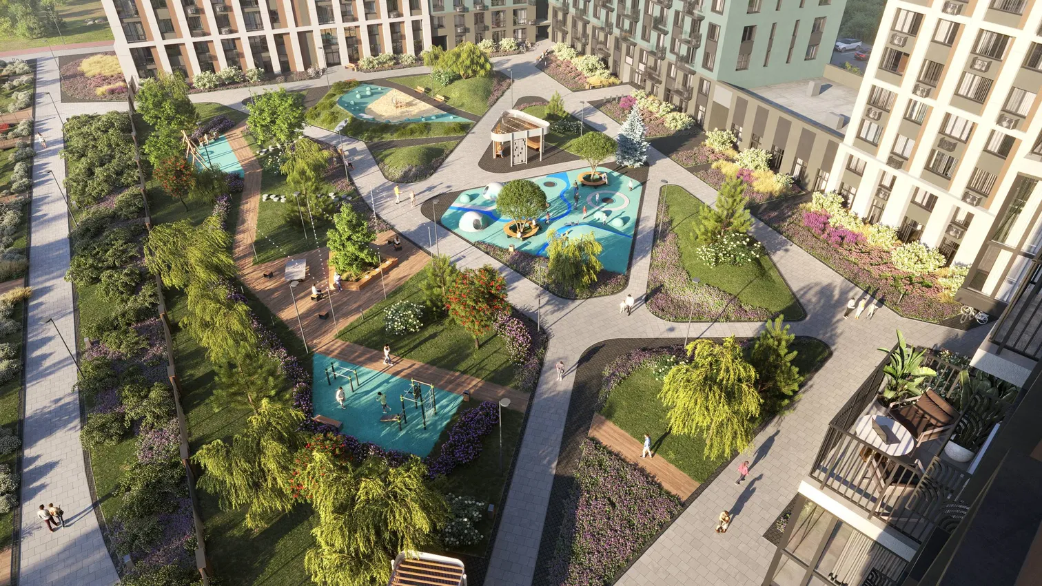 Жилая среда «Экополис» в Альметьевске, Татарстан, является примером жилых кварталов нового поколения, где природа и современное жилье находятся в гармонии. Эти зеленые оазисы предлагают жителям не только красивые ландшафтные решения с влаголюбивыми растениями и деревьями, но и продуманные зоны для отдыха, игр и работы. Террасы, расположенные рядом с «сухим ручьем», создают идеальное пространство для отдыха на природе, а фасады зданий идеально вписываются в окружающий ландшафт.