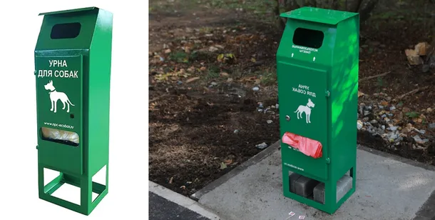 Для удобства уборки за домашним питомцем во время прогулки предусмотрены диспенсеры для дог-пакетов (набор состоит из одноразового пакета и совка).