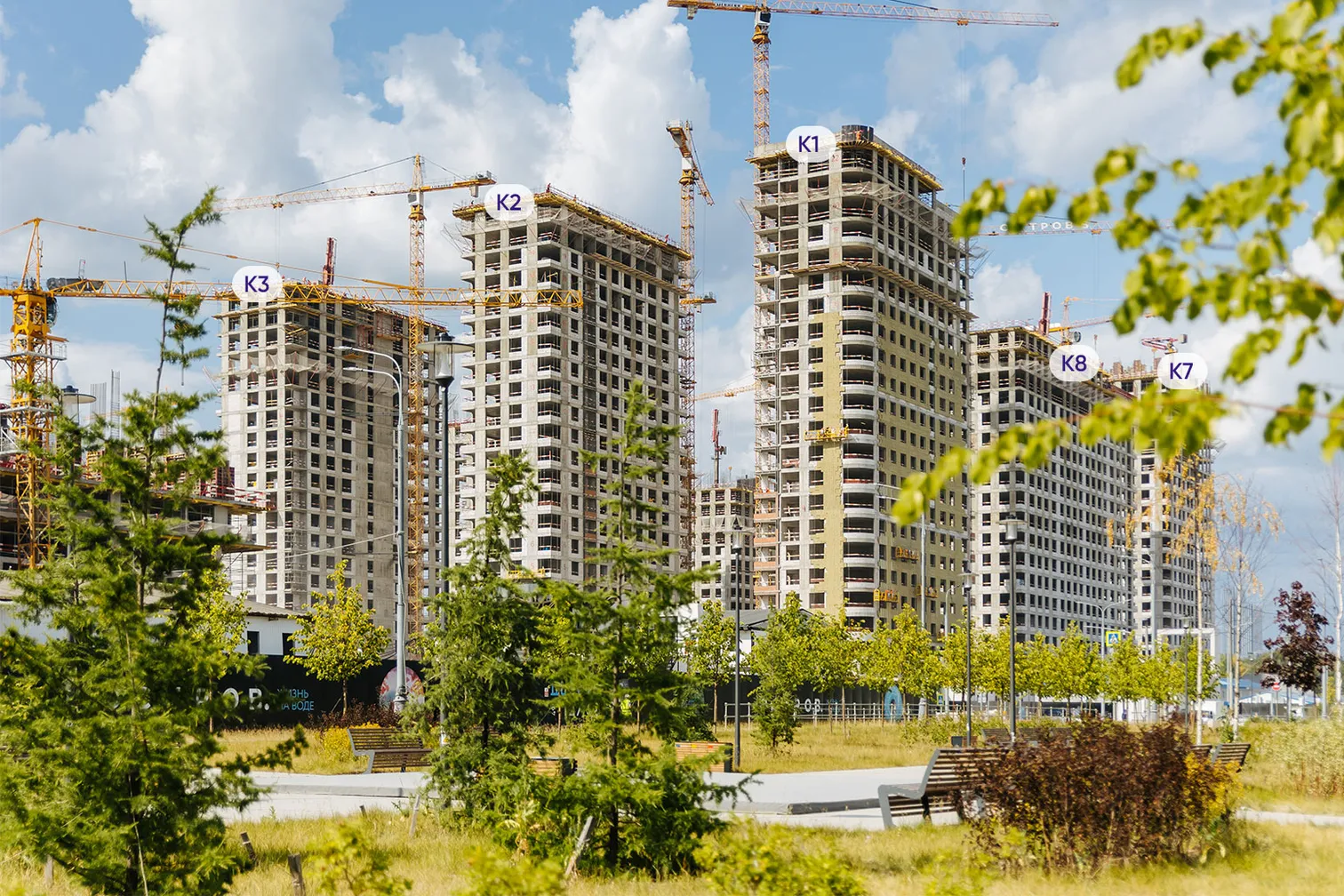 Жилой комплекс «Остров» состоит из 10 различных кварталов, этажностью от 5 до 23 этажей.
