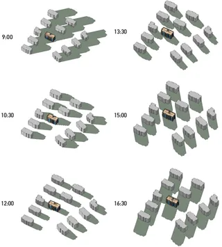 Для моделировании потоков энергии во всем объекте учитываются теплотехнические свойства ограждающих конструкций, внутренние нагрузки от оборудования и людей и наружное воздействие солнечной инсоляции. Для оценки солнечной инсоляции выполнен расчёт затенения окружающими объектами с учётом географического положения объекта, его ориентации в пространстве, месяца, времени суток.