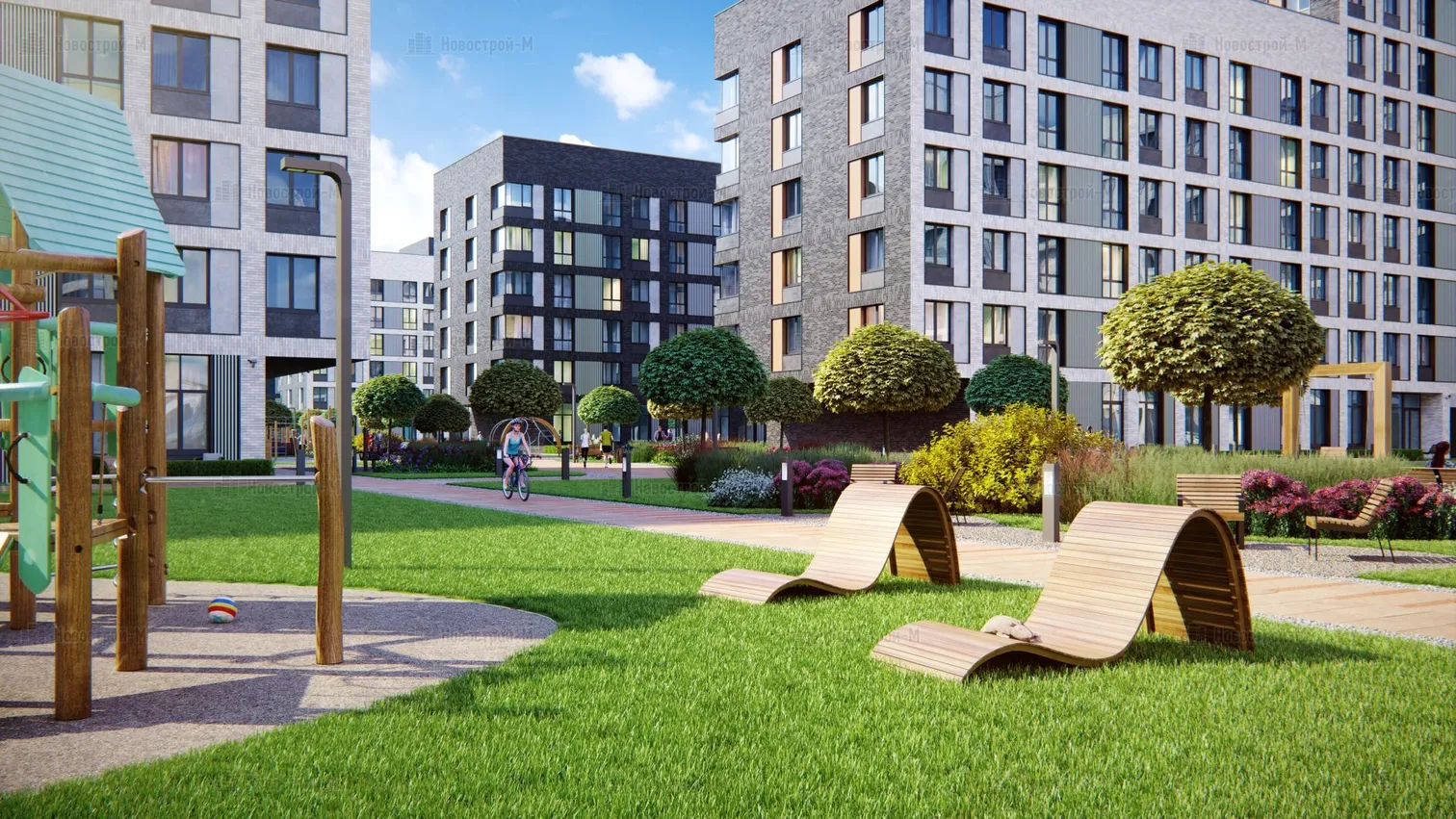 Изобилие света, простора и зелени: продуманная ландшафтная архитектура не нарушает существующую экосистему места. Концепция благоустройства разработана голландским архитектурным бюро MLA+, объем формируют большие деревья, за детали отвечают кустарники, злаковые травы и цветы. Всю территорию homecity пересекает широкий бульвар, на ней много общественных пространств. Кстати, в них нет не освещенных участков в вечернее время.