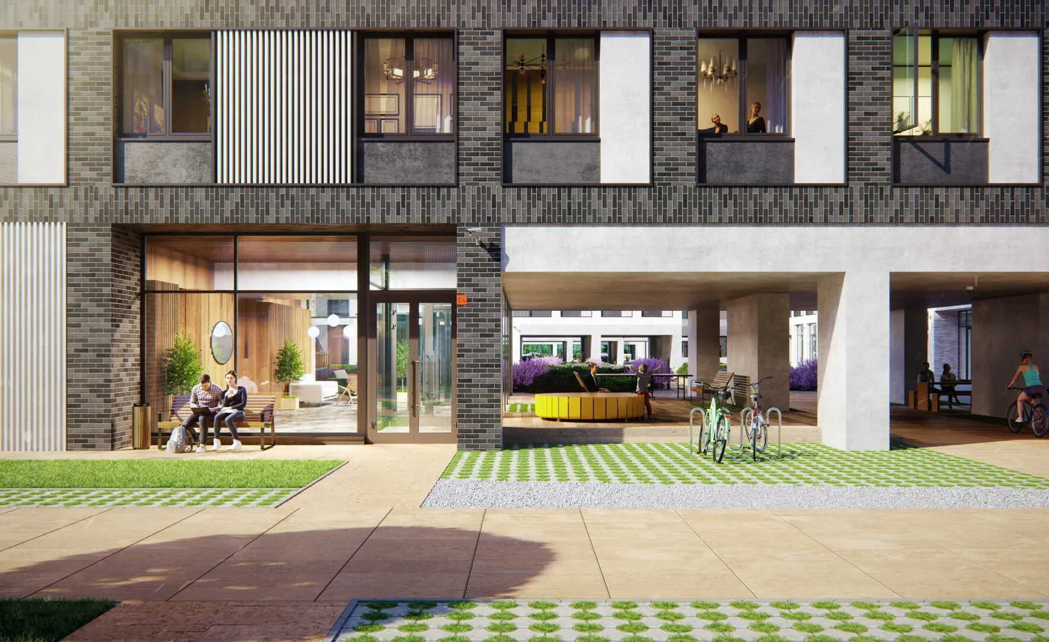 Функциональное жилье: большинство квартир спроектированы с панорамным остеклением, просторными кухнями, есть возможность сделать зимний сад. Жилая зона начинается со вторых этажей, на первых располагается крафтовый ритейл и социальная инфраструктура.