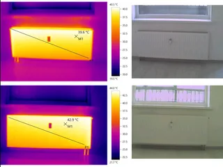 Тепловизионное обследование элементов системы отопления. Проверяется равномерность нагрева, наличие тепловых аномалий, требующих проведения ревизии радиатора.